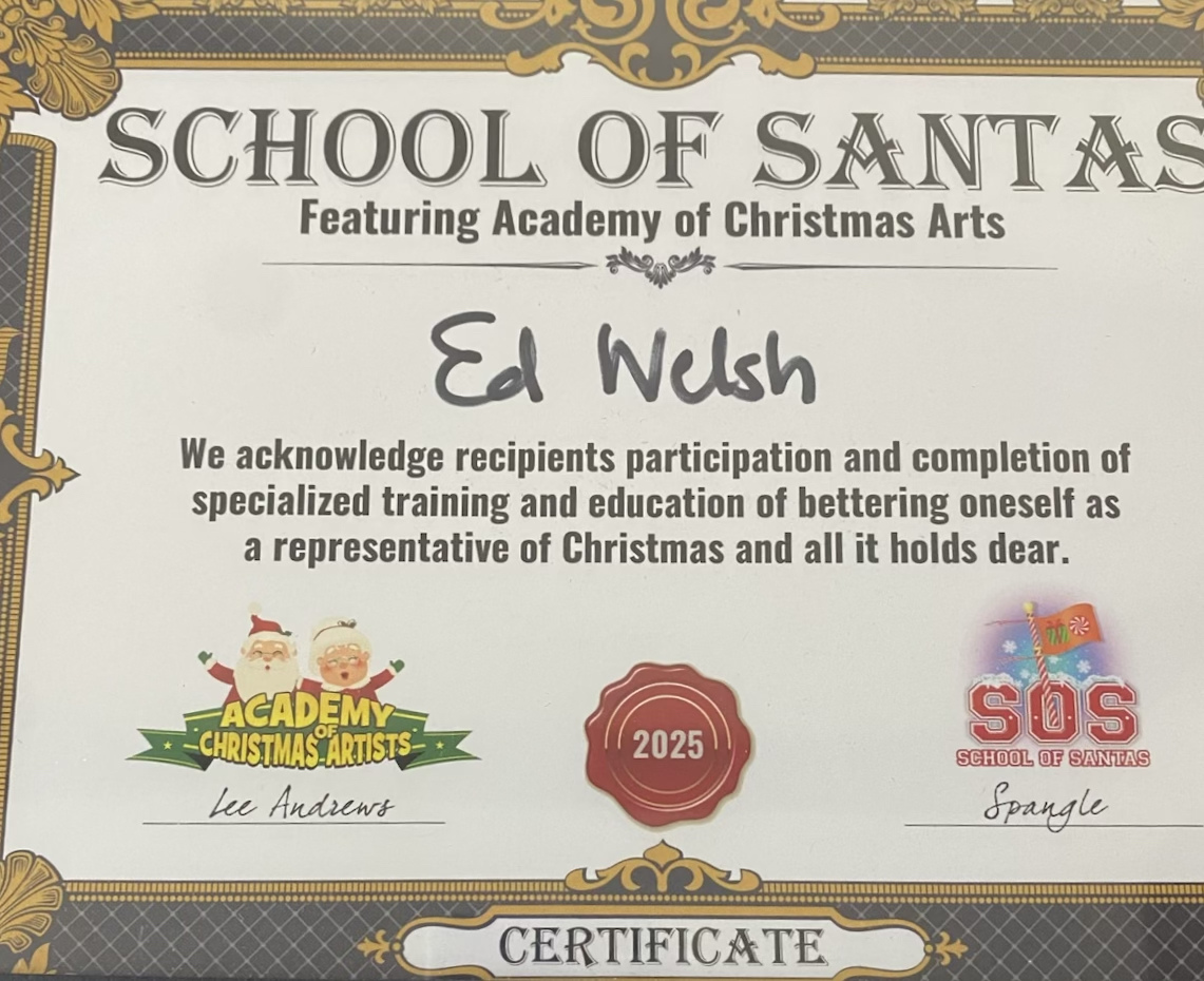 In July 2025, Santa Ed & Mrs. Jo Claus attended the renowned School of Santas featuring the Academy of Christmas Arts in Branson, Missouri. This program provides specialized training and education for Santas and Mrs. Clauses, ensuring each graduate represents the true spirit of Christmas with professionalism, warmth, and authenticity.